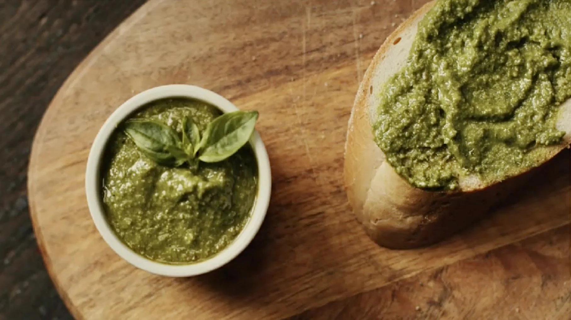 Here we have another bite sized snack! This sweet pea pesto uses fresh ingredients and incorporates the perfect blend of garlic and Italian seasoning. Spread the pesto on individual bread slices or add to a medium size bowl for dipping!
